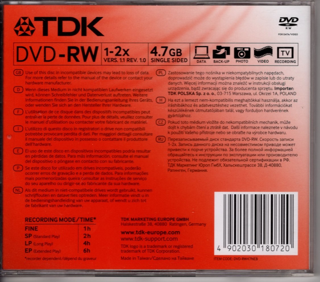 | 2012 | 1 CD-R | 3 DVD+R DLs | 6 DVD+RWs | ||